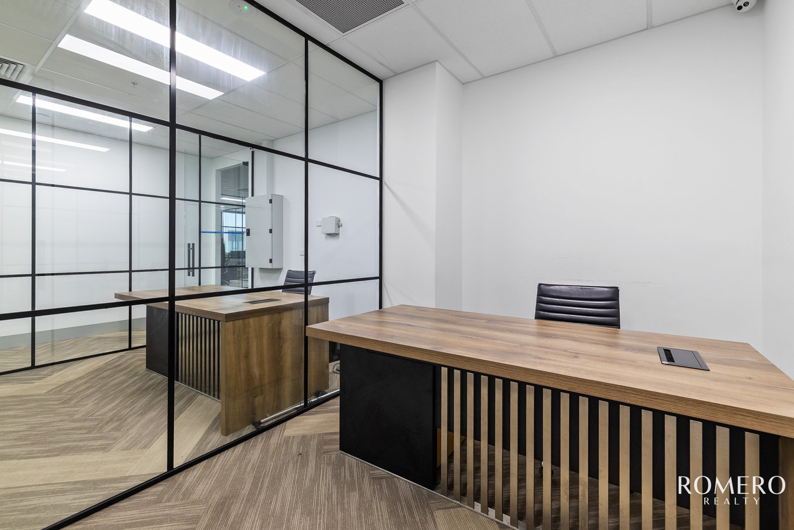 This is effectively three offices in one, seamlessly joined to create a functional, turnkey workspace.