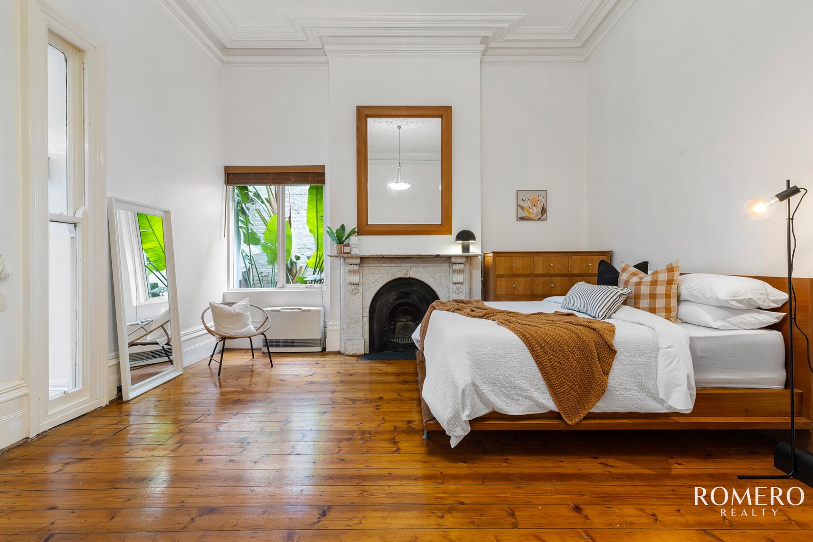 Behind secure three-door entry, you’ll discover high ceilings, grand skirting boards, and an inviting fireplace that instantly set the tone for warm and character-filled living. This apartment tells a story, enhanced by the home’s classic architectural details and sun-splashed ambience.